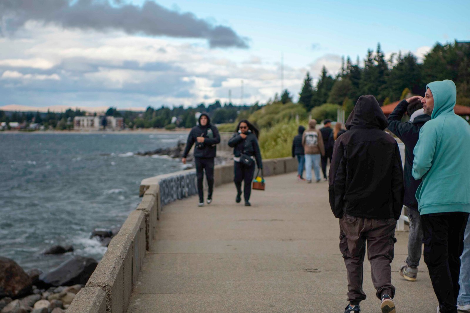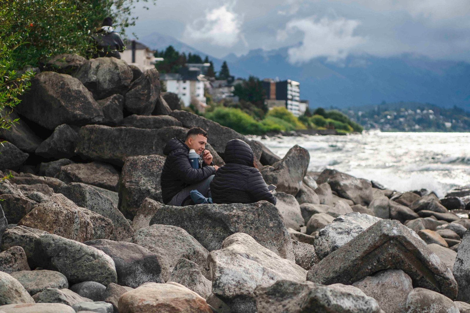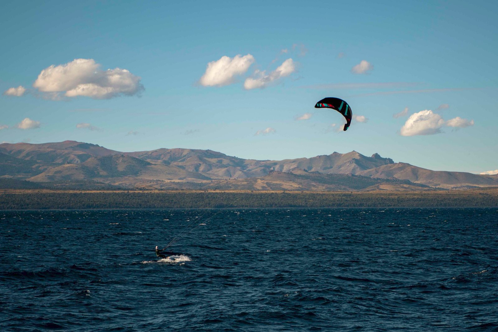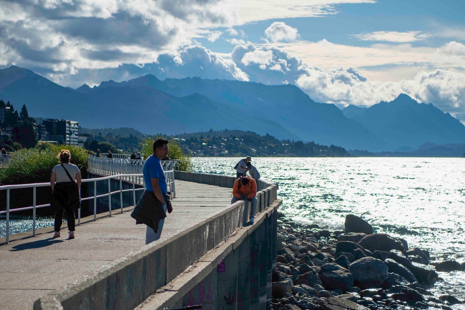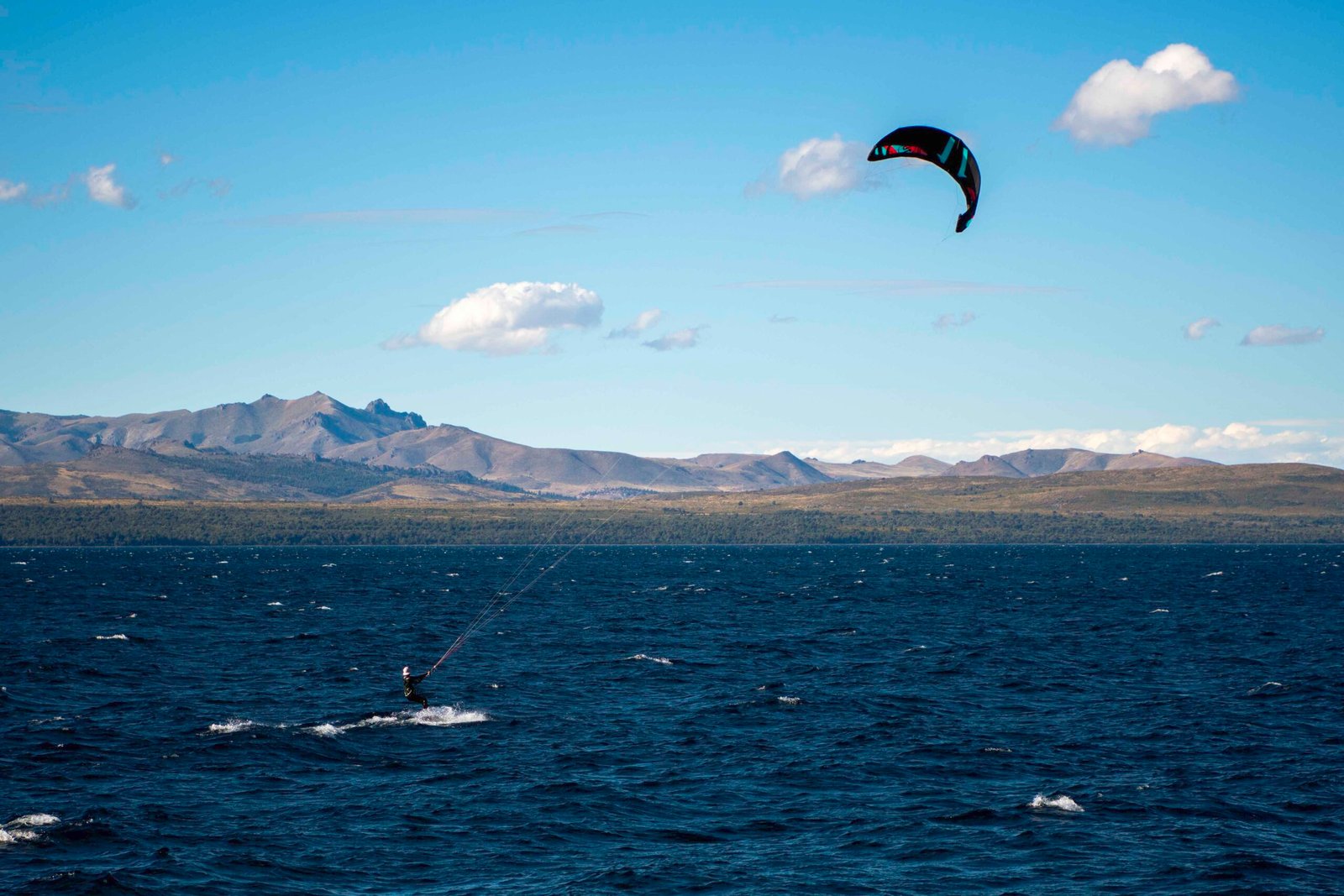 An afternoon by Lago Nahuel Huapi in Bariloche, as the summer sun blazes, and the sky stretching endlessly above. Far from deterring an afternoon by the lake, this breezy day adds an exhilarating energy to the stunning natural beauty, creating a symphony of motion and light that is simply captivating.