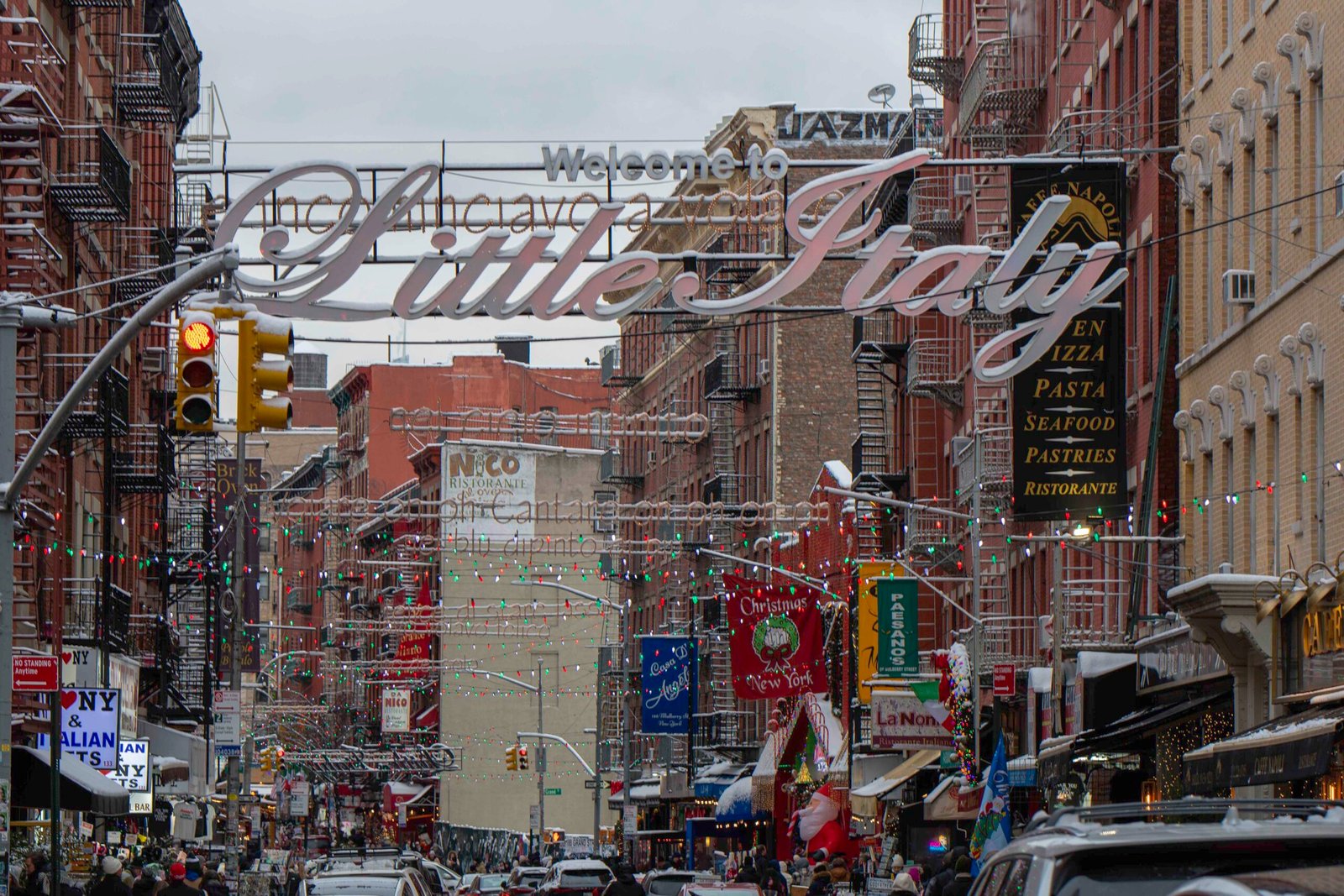 A short walk from the vibrant chaos of Chinatown brings you to a distinct shift in atmosphere Little Italy. Suddenly, the red and gold of Chinatown gives way to the green, white, and red of the Italian flag. The scent of soy sauce and ginger is replaced by garlic, oregano, and simmering tomato sauce. Holiday lights twinkle above Mulberry Street, and the sound of classic Italian tunes drifts from open doorways.